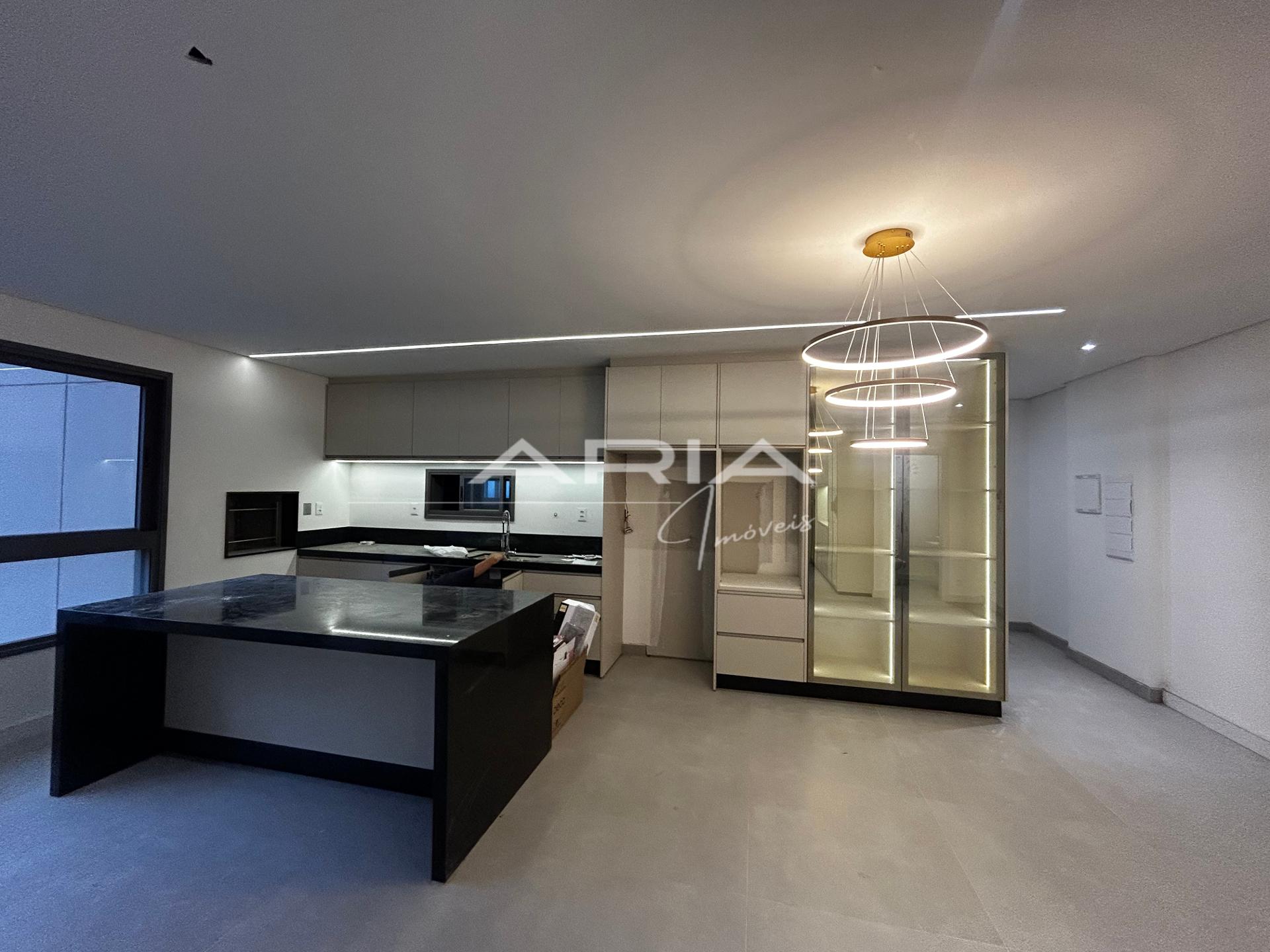 - Cozinha com ilha e gourmet integrado, com cooktop e depurador