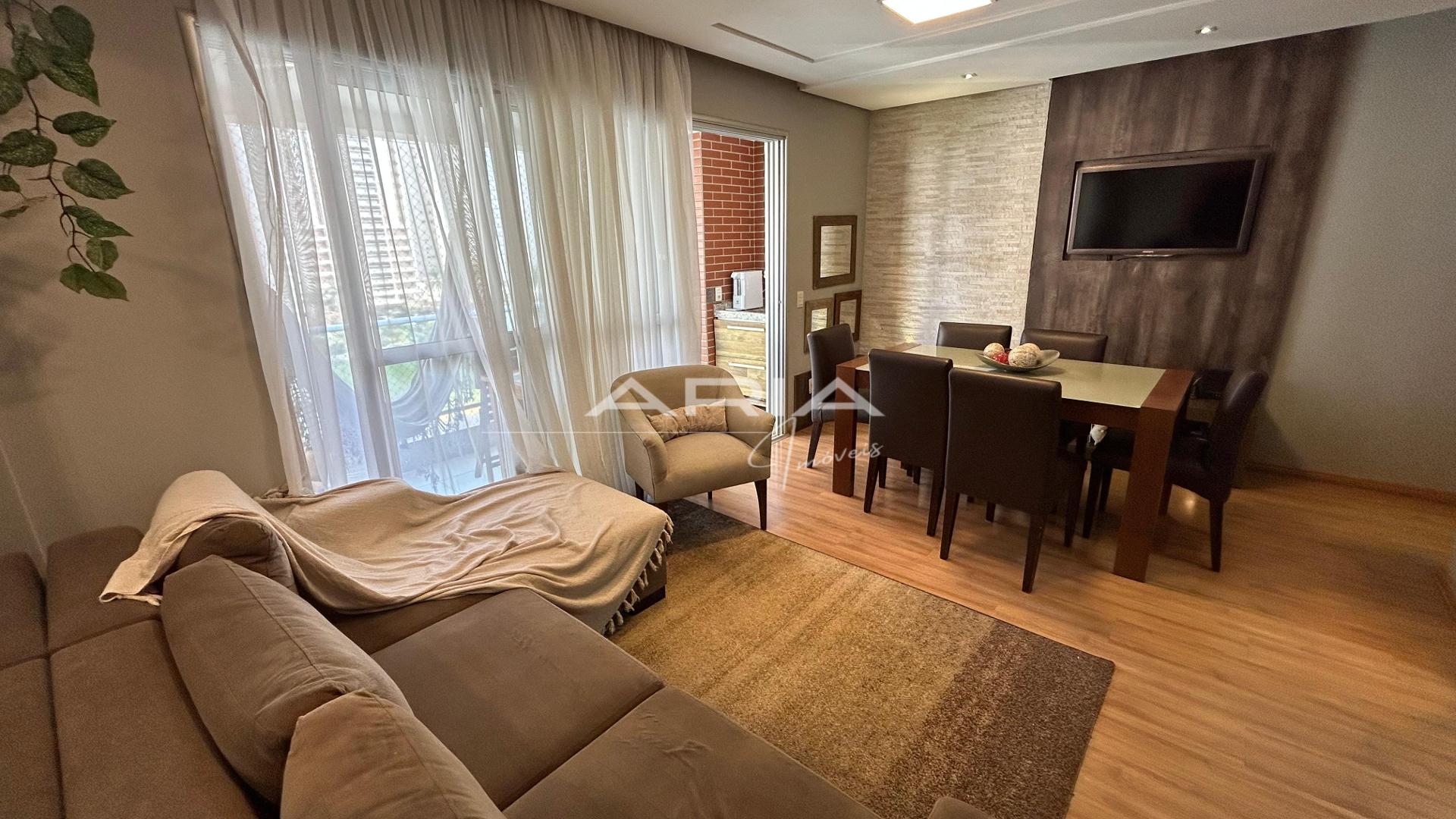 - Sala em dois ambientes, com sacada e churrasqueira