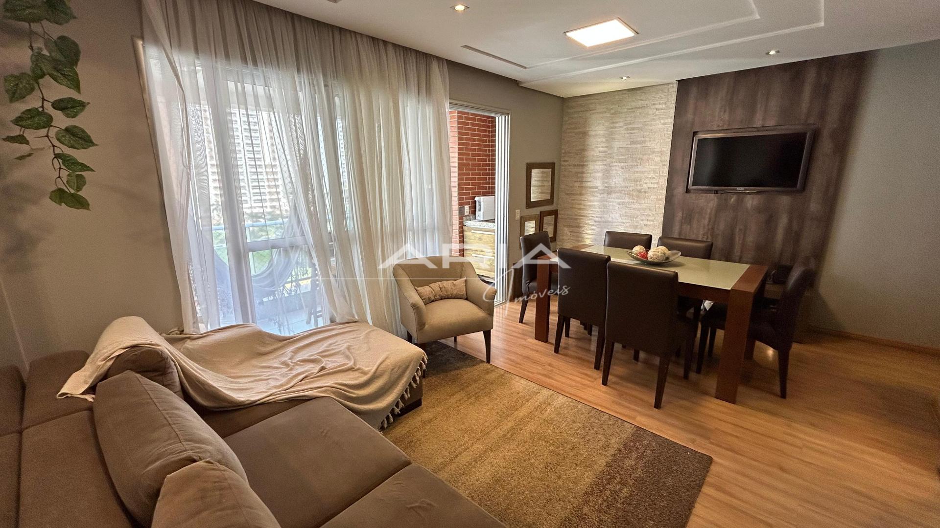 - Sala em dois ambientes, com sacada e churrasqueira
