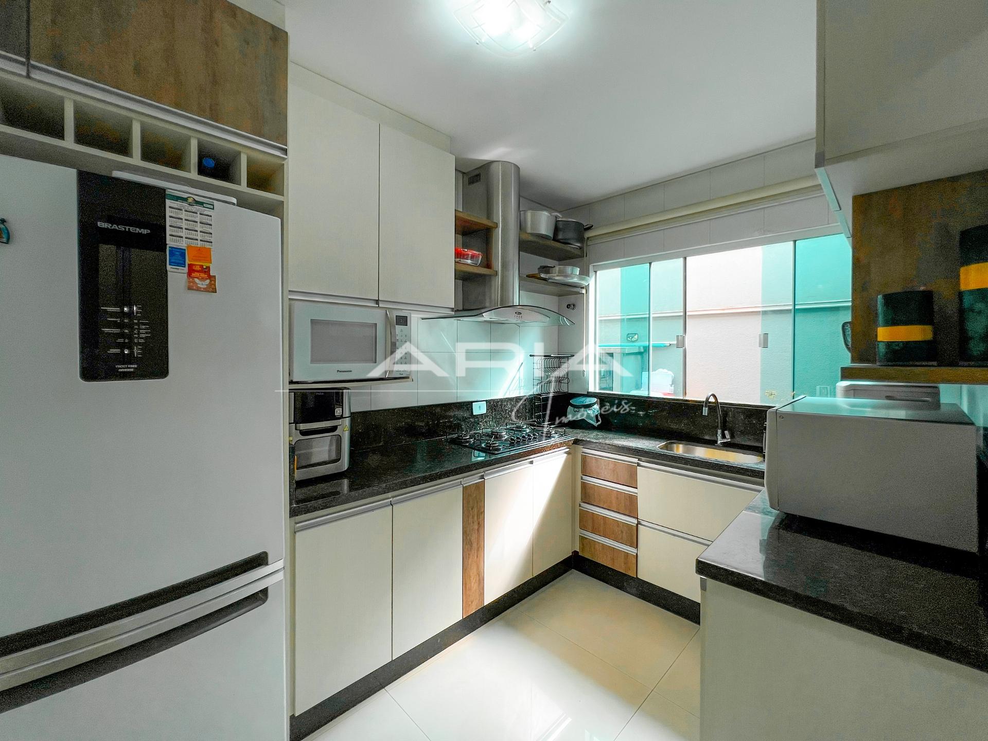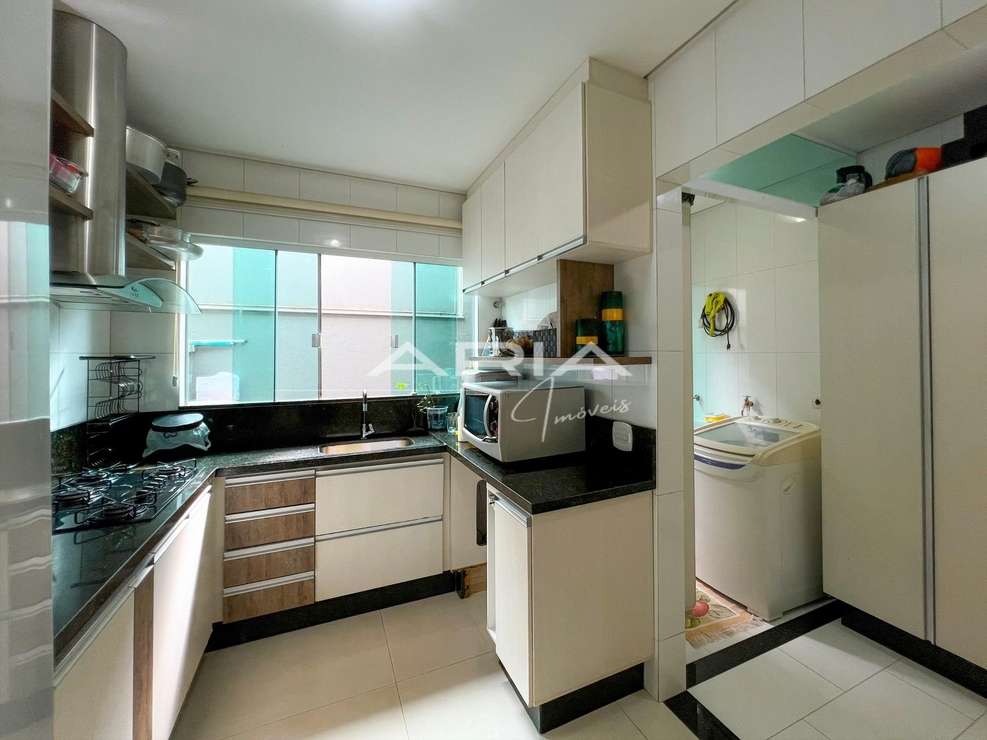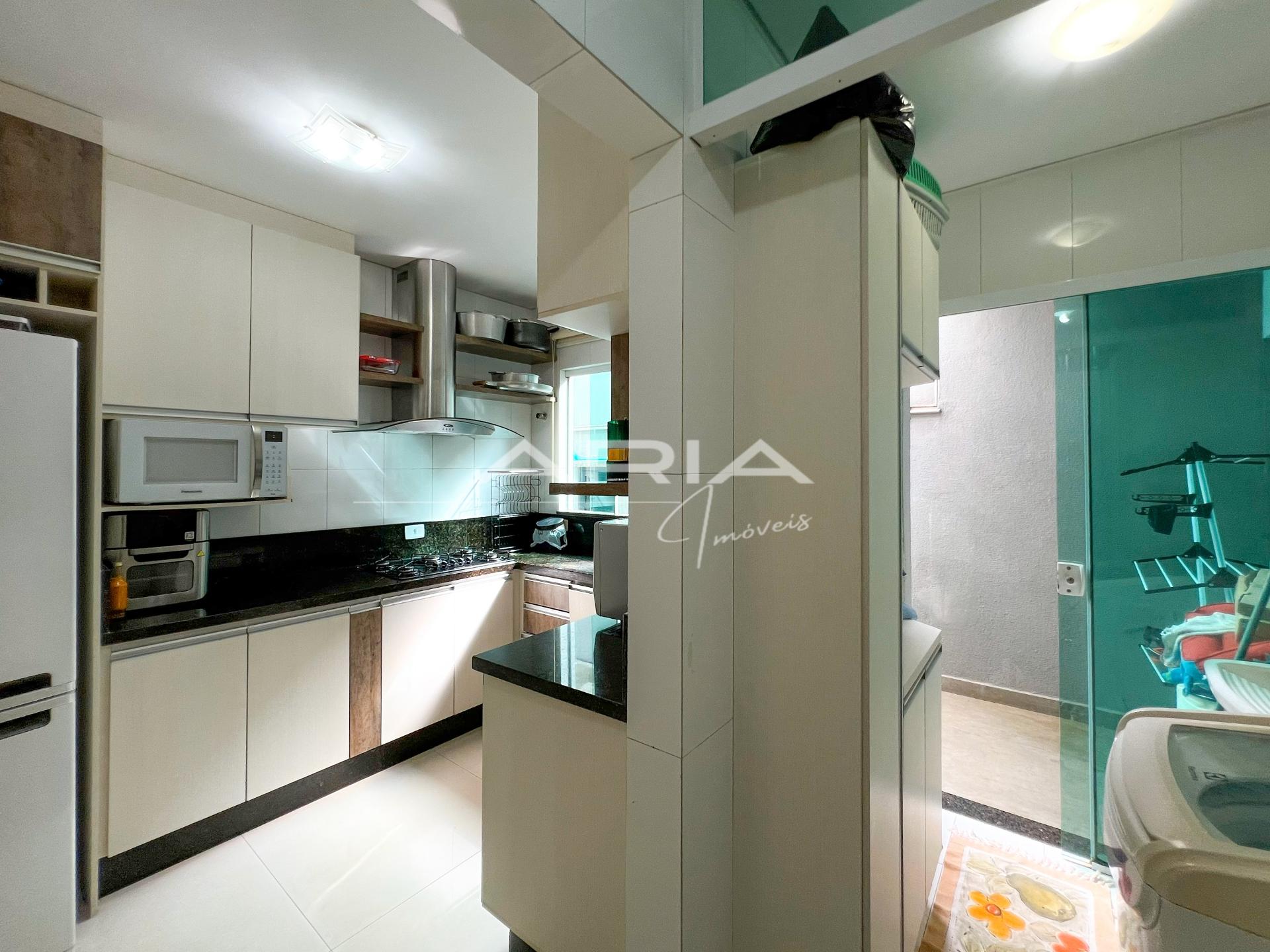 - Cozinha com armários planejados, forno elétrico, cooktop e micro-ondas
